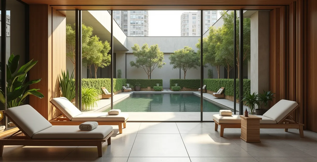 Die gängige Annahme ist, dass die Lage alles ist und ein beliebiges Wellness-Angebot ausreicht. Man durchforstet Bewertungsportale nach der höchsten Sternezahl und dem niedrigsten Preis. Doch was, wenn der wahre Schlüssel zu einer ausbalancierten Städtereise nicht in der Trennung, sondern in der perfekten Verschmelzung von Erlebnis und Erholung liegt? Was, wenn die Antwort in einer durchdachten Regenerations-Architektur des Hotels selbst zu finden ist – ein Konzept, das weit über einen Pool im Keller hinausgeht?